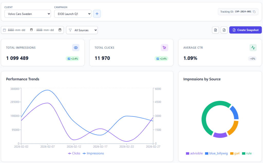 Vi visade även ett rapporteringsverktyg som automatiskt sammanställer kampanjdata i ett webbaserat gränssnitt. Här en demovariant för att kunna få en uppfattning av verktyget: Demolänk
